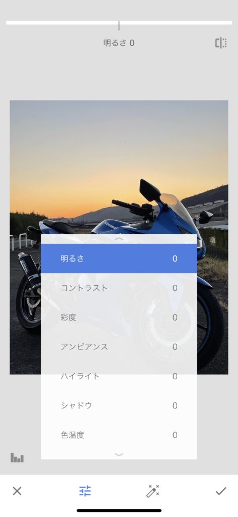 各項目の詳細はGoogleのSnapseedヘルプに書いてありますので参照してください。